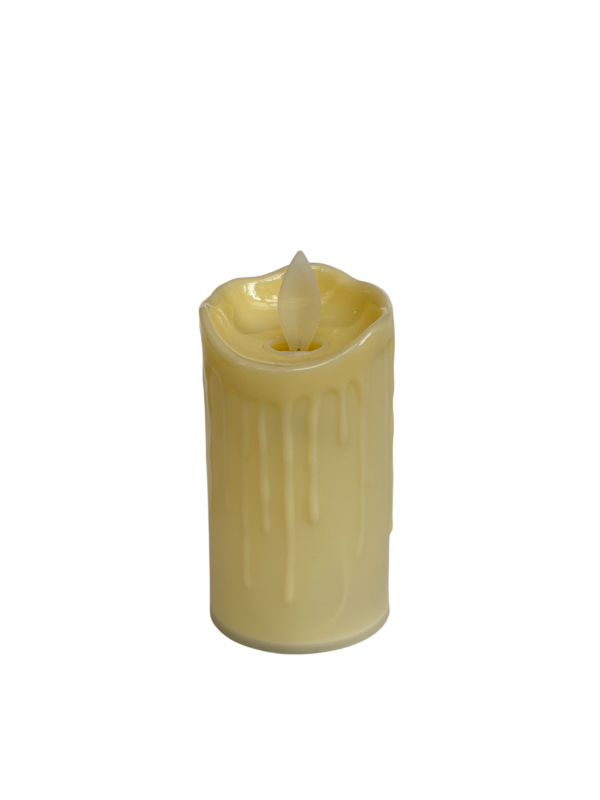 Aporta calidez y estilo a cualquier ambiente con esta vela LED de diseño realista, que simula cera derretida para un acabado elegante y natural. Su luz cálida parpadeante recrea el efecto de una llama real, sin riesgos ni mantenimiento.