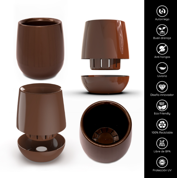 - El agua almacenada en el plato activará el autorriego por capilaridad o por raíz de tu planta, tal como lo hace en la naturaleza.